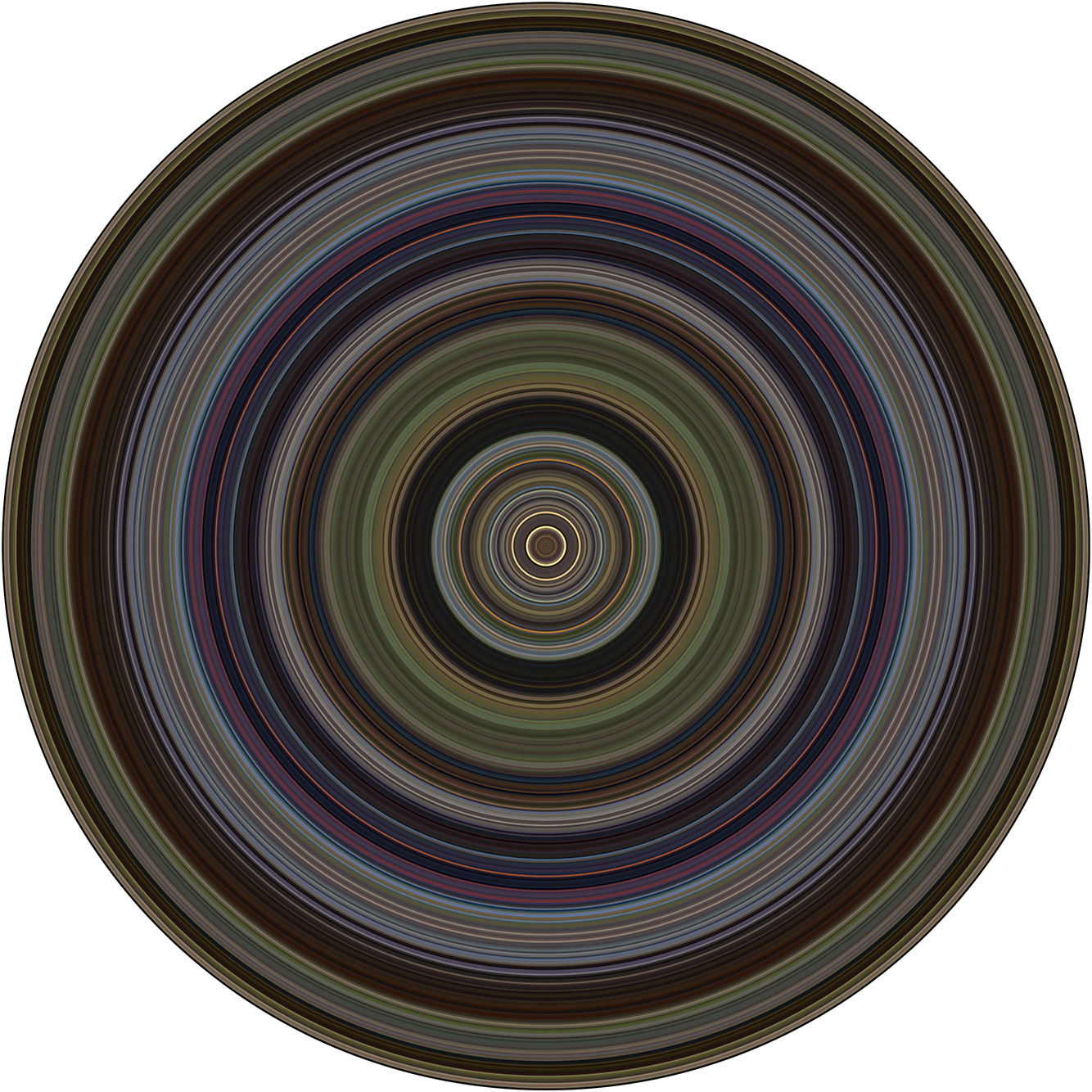 Every circle you see in the wheel represents a single frame, smoothed out to show its average color. The largest, outermost circle is the first frame. And the smallest, innermost circle is the final one.